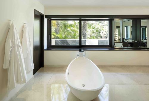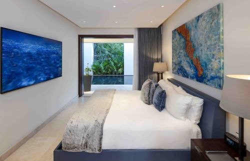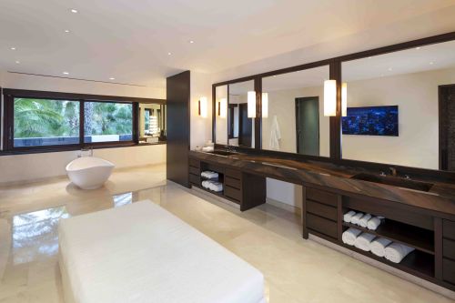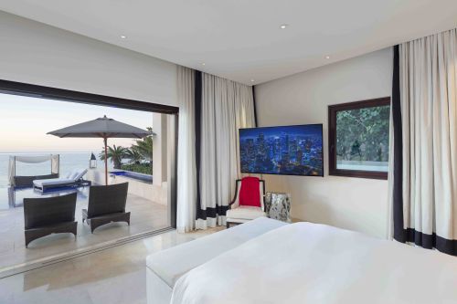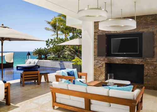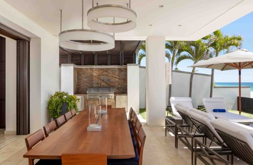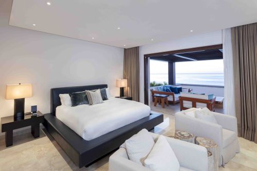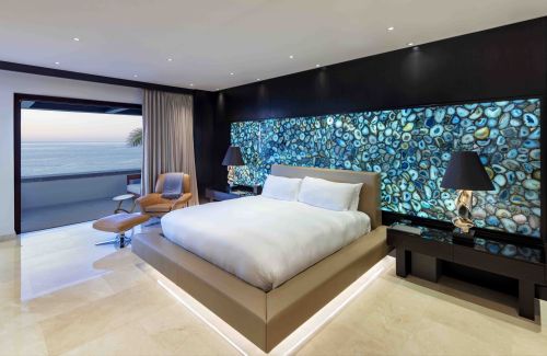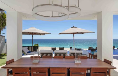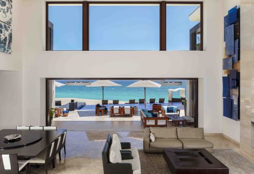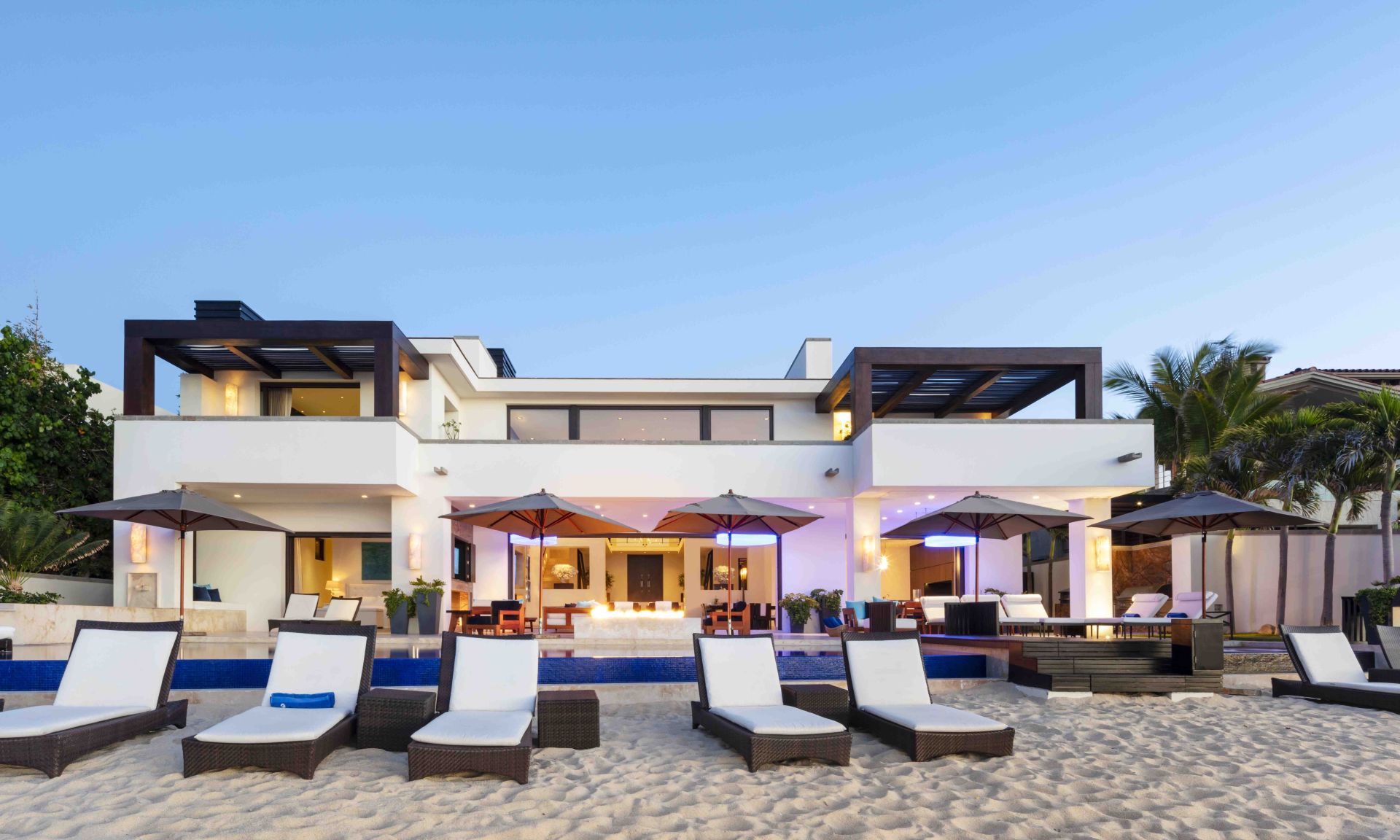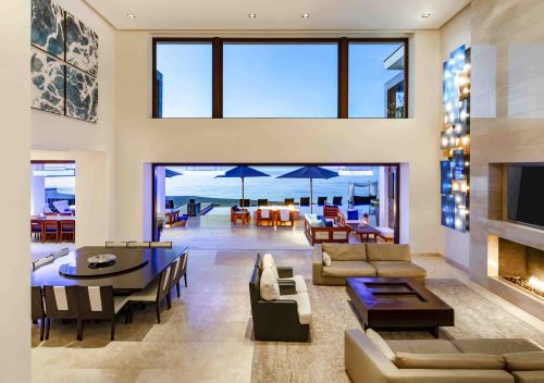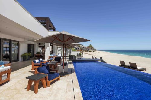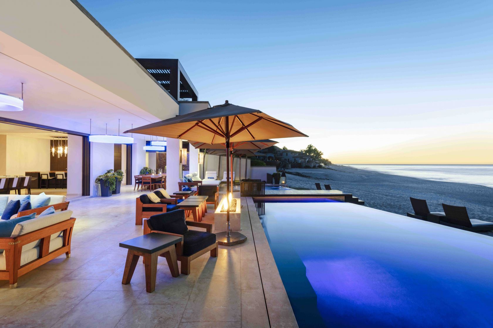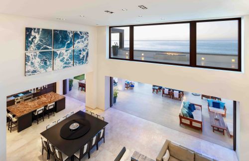 This stunning contemporary home is the ultimate home for entertaining. With a spectacular entrance double doors lead into the grand foyer with views straight to the ocean. Nestled into a quiet cu-de-sac, this home features, a unique master suite and master bathroom, plus five bedrooms custom details and luxury finishes, seven and half bathrooms. This special home has all the amenities that anyone can dream of, with an expansive chef kitchen, media room, massage treatment room in addition to the grand salon. The pocket doors open up to reveal the amazing outdoor space completed with pool, hot tub, lounge, and dining area. This property features 97' of ocean frontage where you can enjoy the sounds of water crashing from every room. Casa 125 is one-of-a-kind El Dorado custom beachfront home.