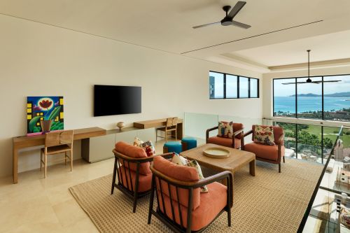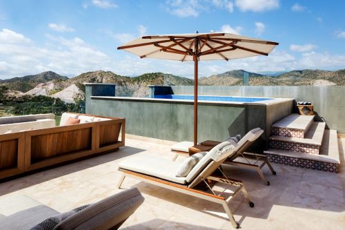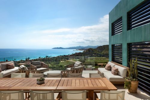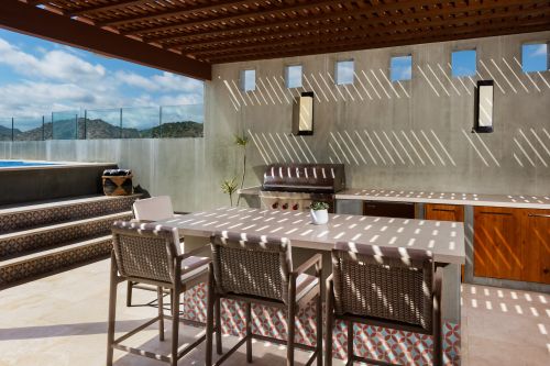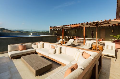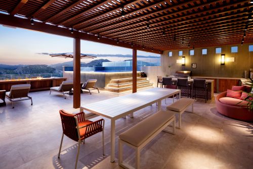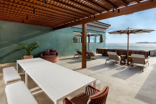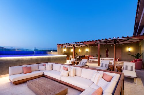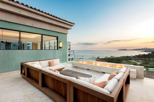 This modern penthouse features 180° views from the Top of El Dorado, boasting panoramic views of the Sea of Cortez. Combining elegant style with comfortable beach living, this penthouse is one-of-a-kind with five bedrooms, six and a half bathrooms, a chef kitchen, in addition, a media room and a full-top bar, grill and pool, making this unit perfect for entertaining friends and family.